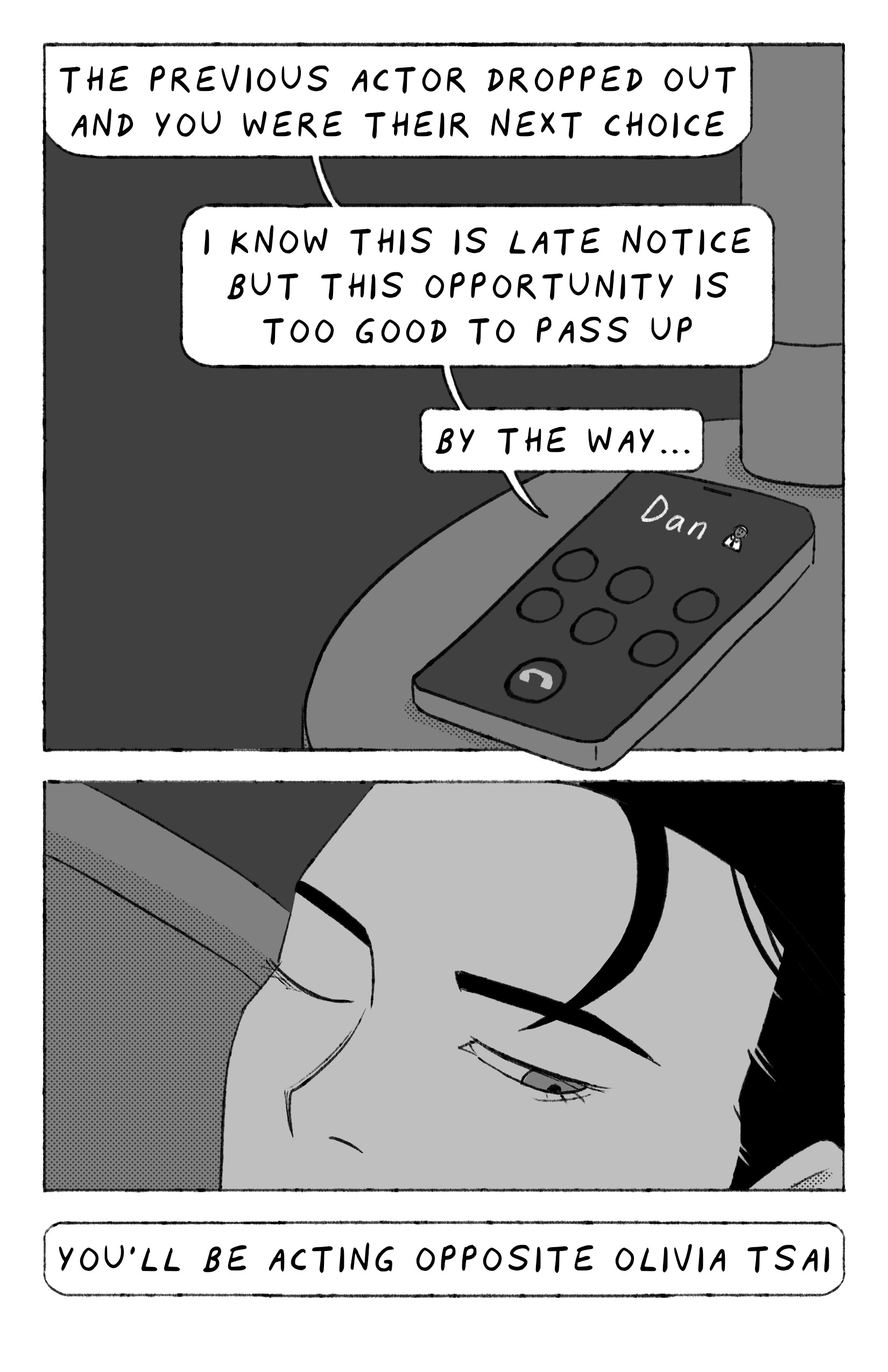 Harper Oh is making her acting debut opposite seasoned actor Olivia Tsai. Harper is Olivia's biggest fan, Olivia likes a few of Harper's songs; so why do they both think they hate each other? Ongoing GL webcomic. [140+ pages on Webtoon]